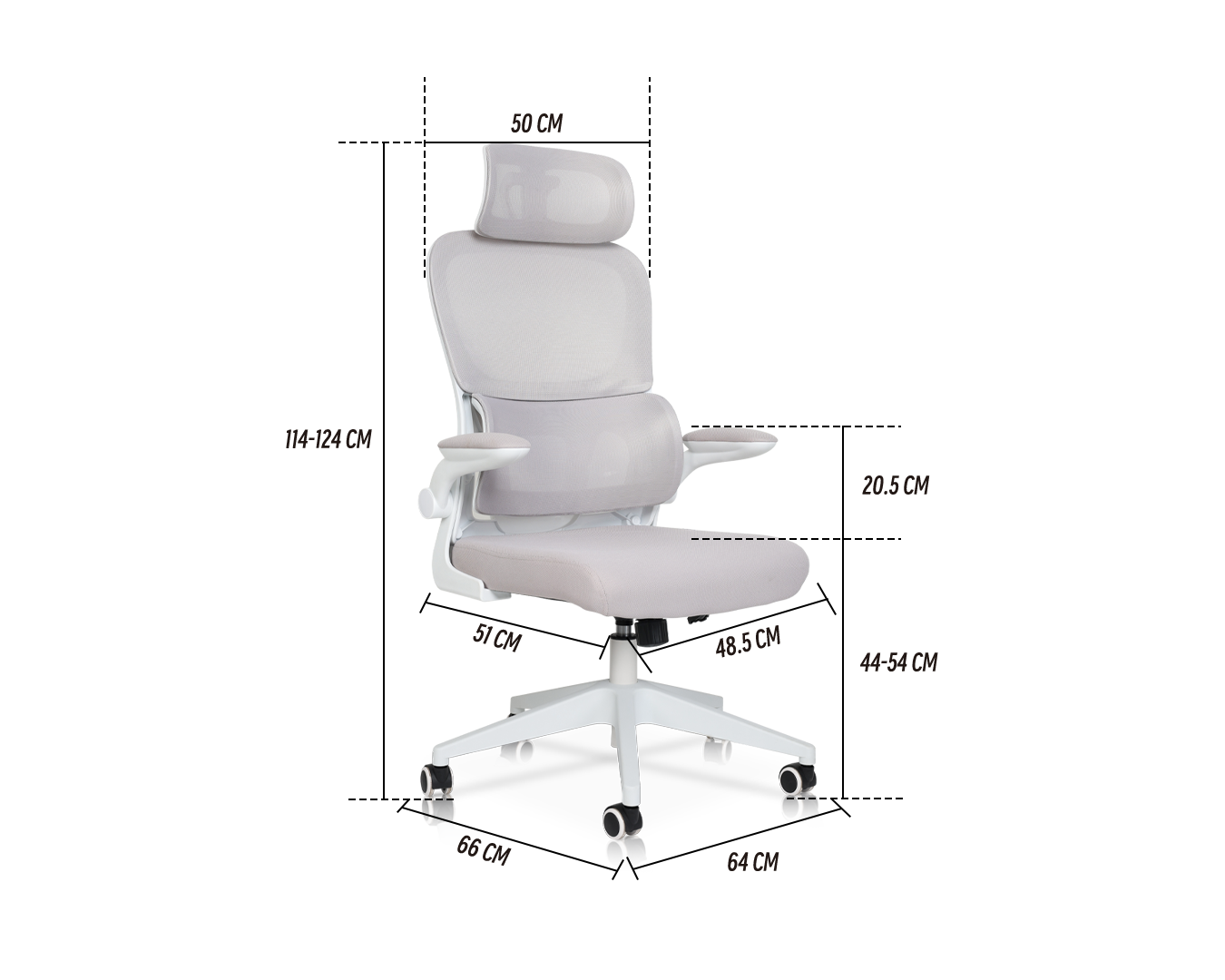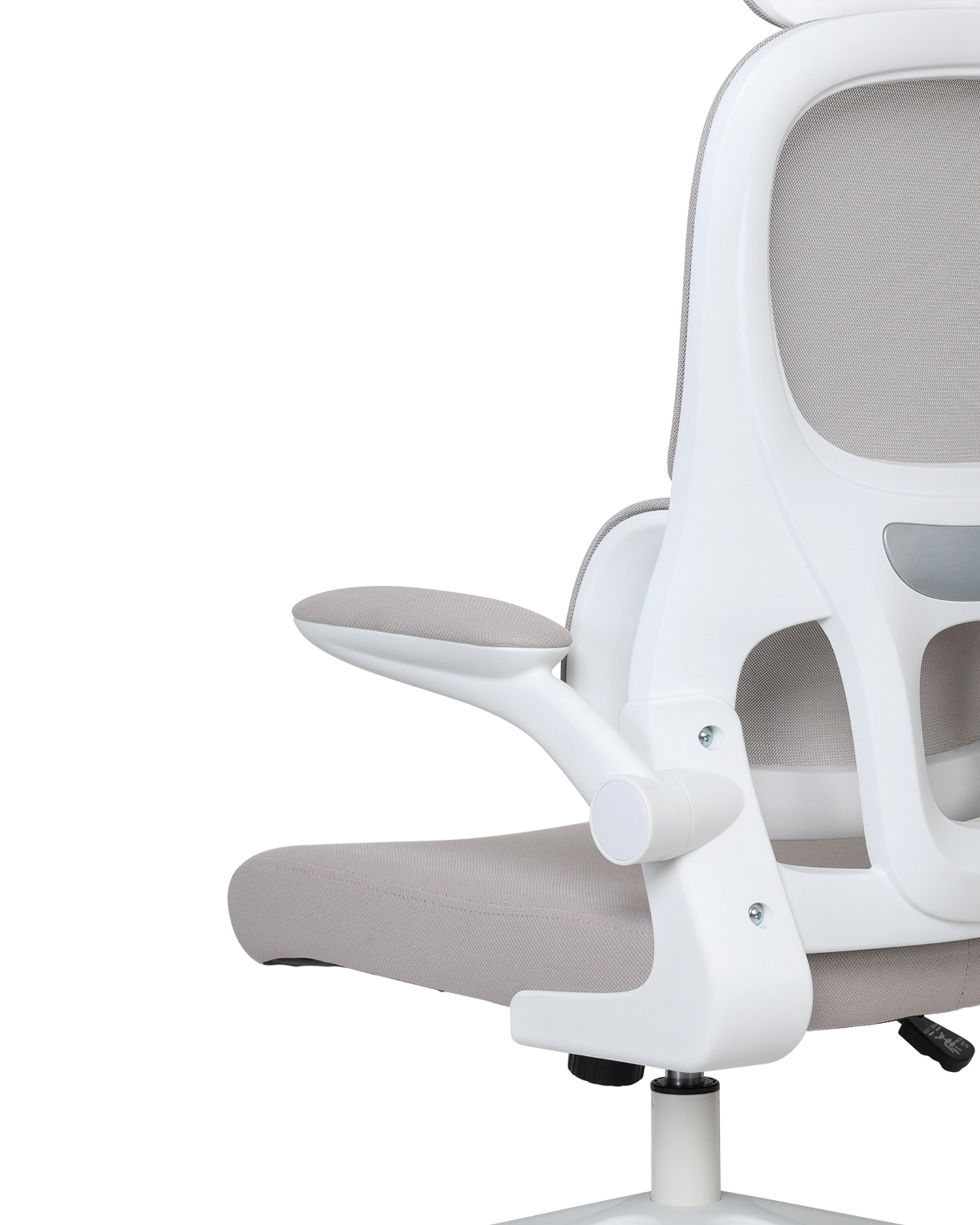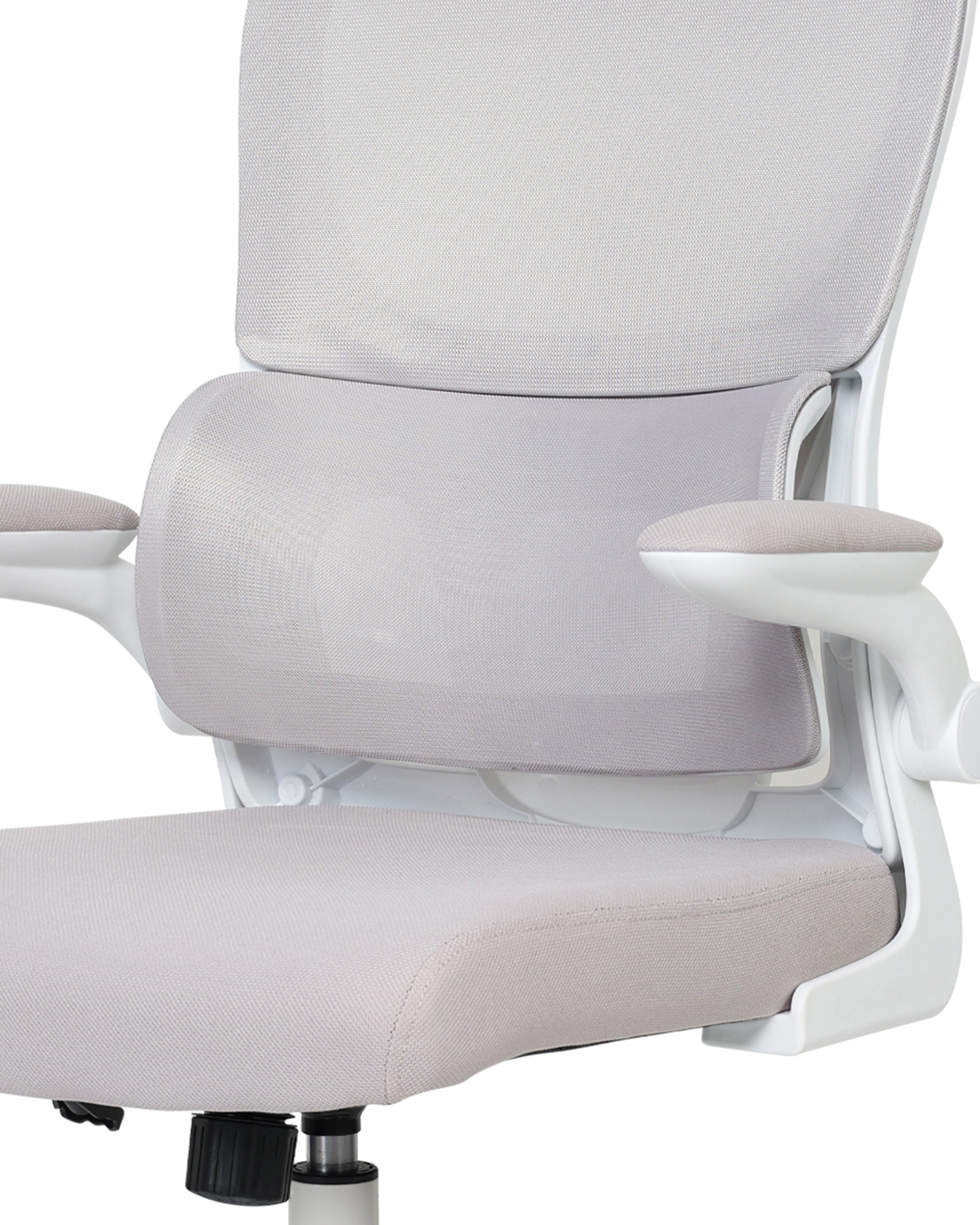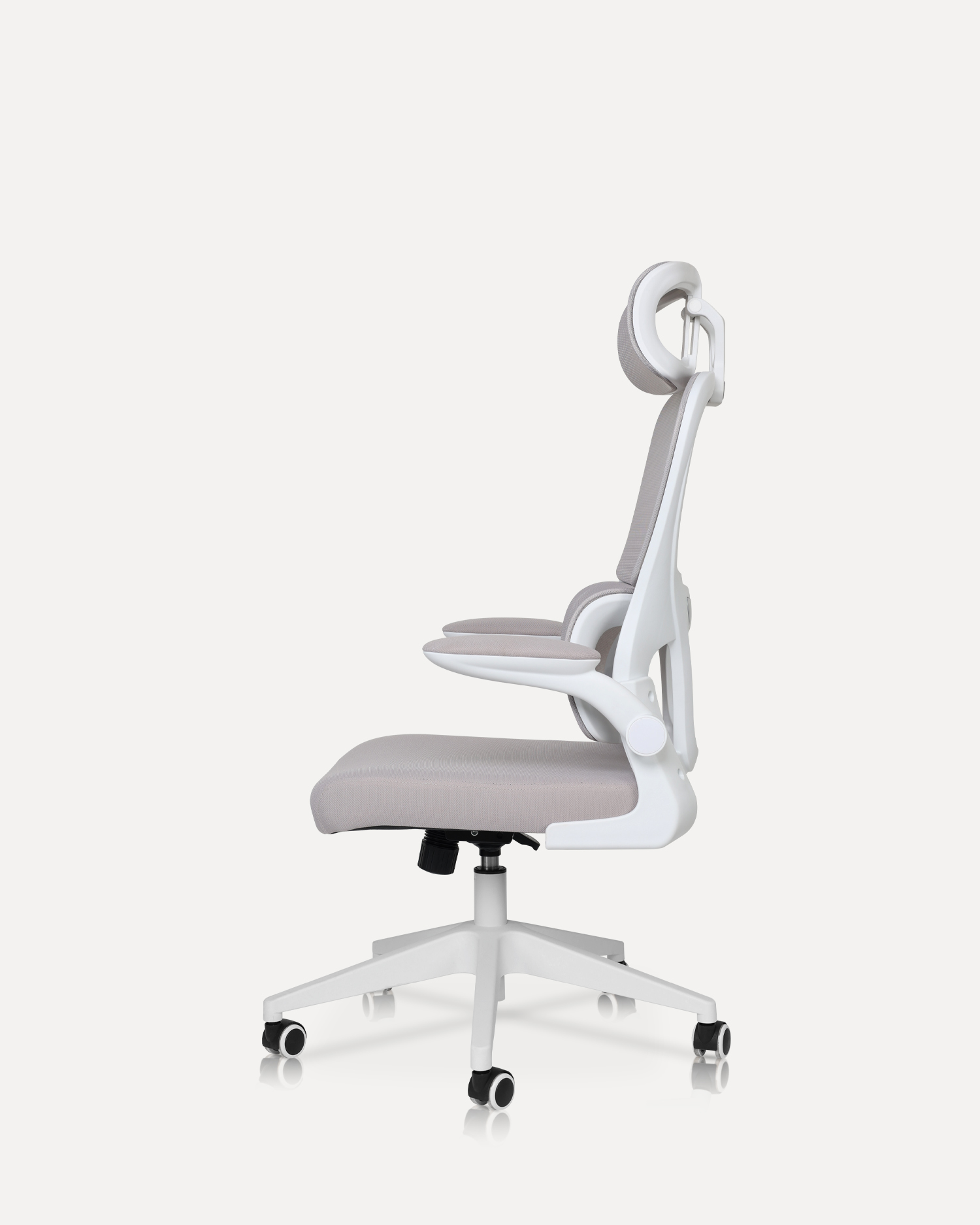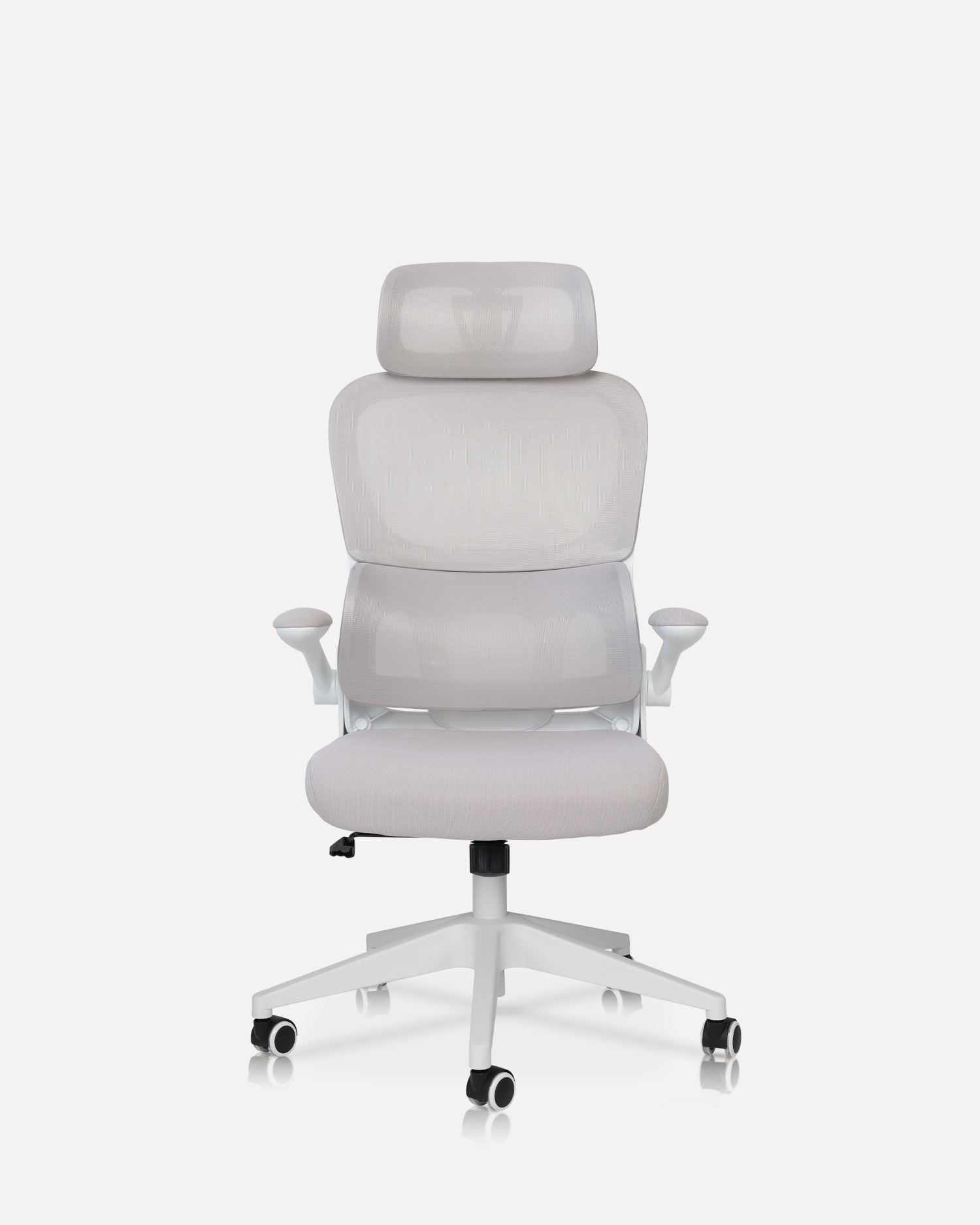 • Featuring a breathable mesh back, adjustable headrest, and segmented lumbar support, this chair is crafted to encourage healthy posture throughout the day. The padded seat ensures comfort during long working hours, while the foldable armrests add flexibility for different seating preferences.