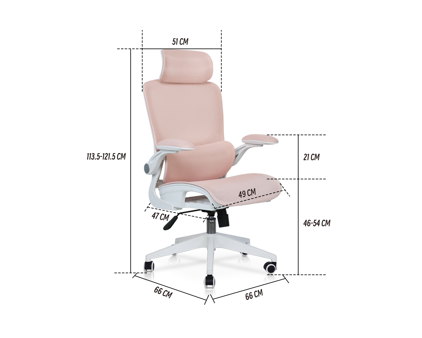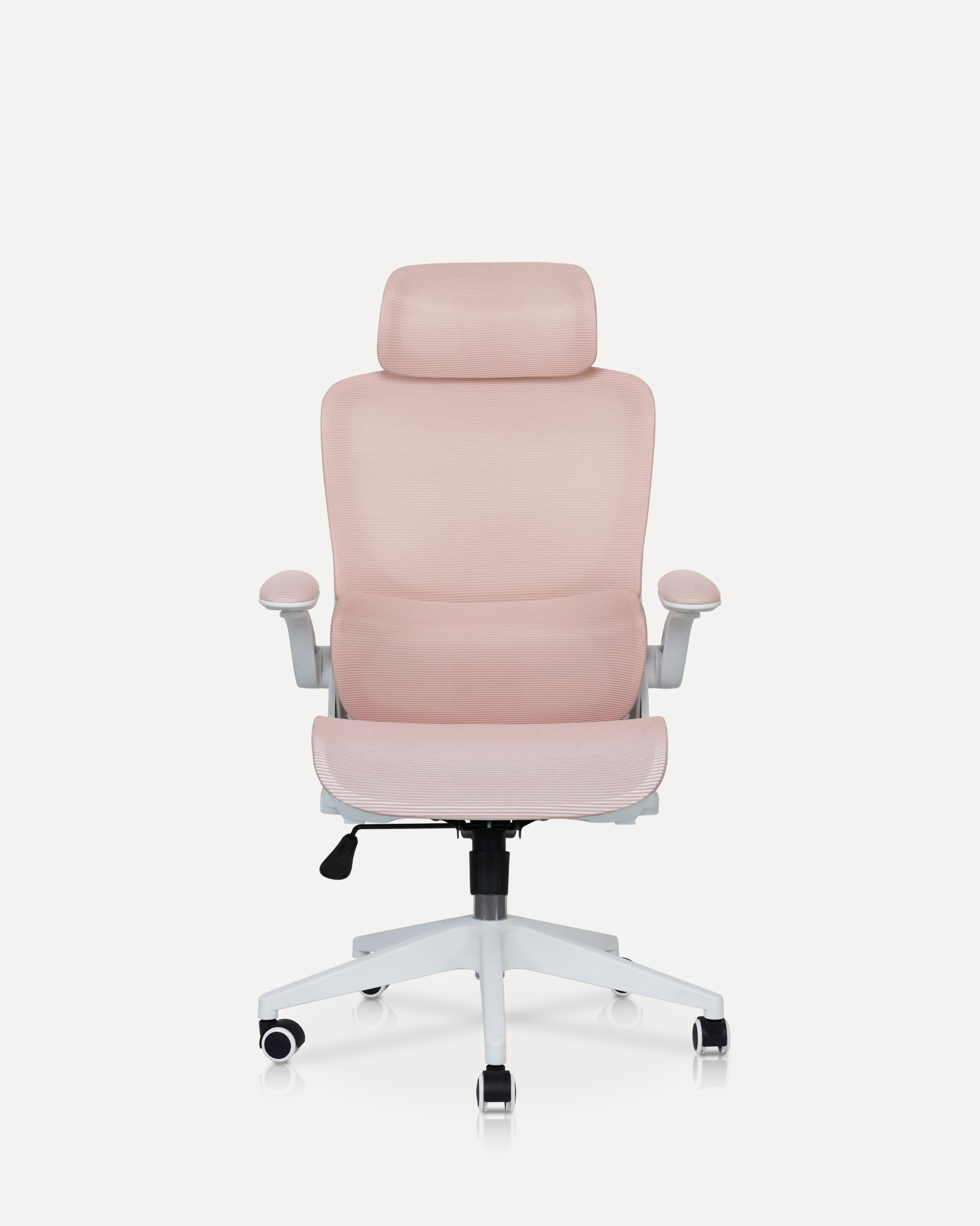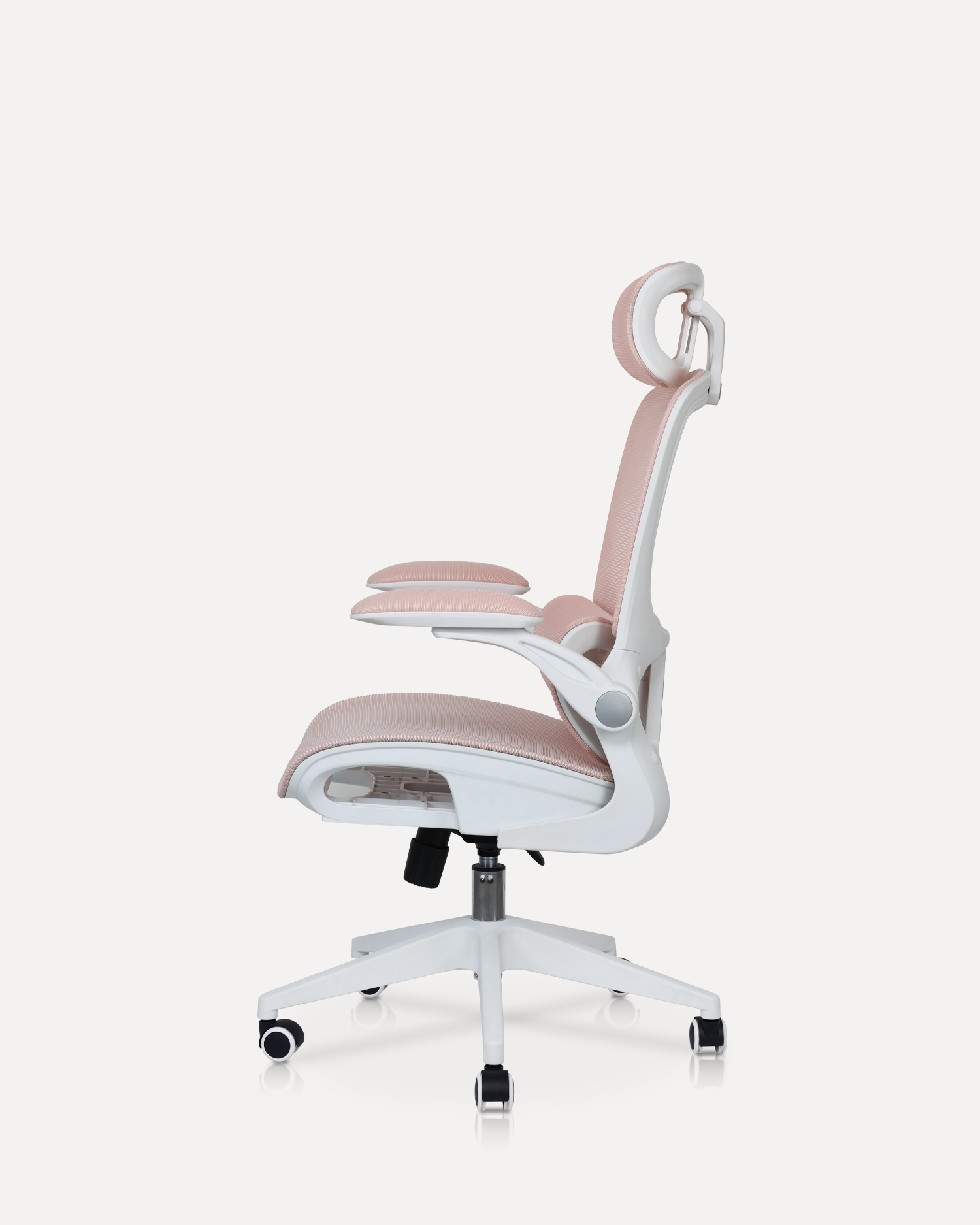 • This stylish office chair is a perfect blend of comfort and elegance. Featuring a soft, pastel pink fabric, it brings a fresh and inviting look to any modern workspace. The ergonomic design includes a high backrest and a well-padded headrest, providing optimal support for your neck and spine, promoting proper posture for extended hours of work or study. The breathable fabric ensures that you remain cool and comfortable throughout the day.